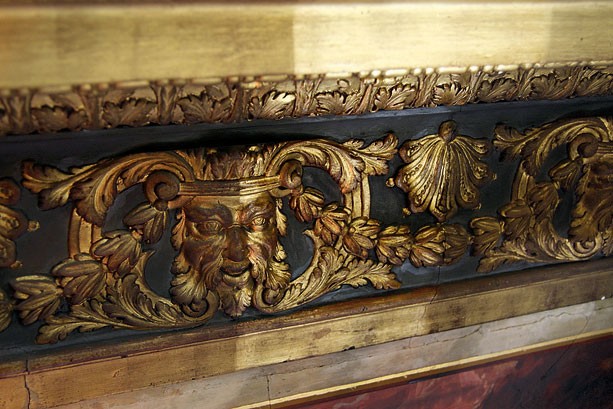 But I digress... the following images, showing details of the recently restored ceiling in the Palace of Nicodemus Tessin the Younger in Stockholm, speak for themselves. And, it tickles me that in the translation, the pre-restored condition of the ceiling is termed an 'injury'. It is a rather good credo with respect to rehabilitation, reclamation and preservation...